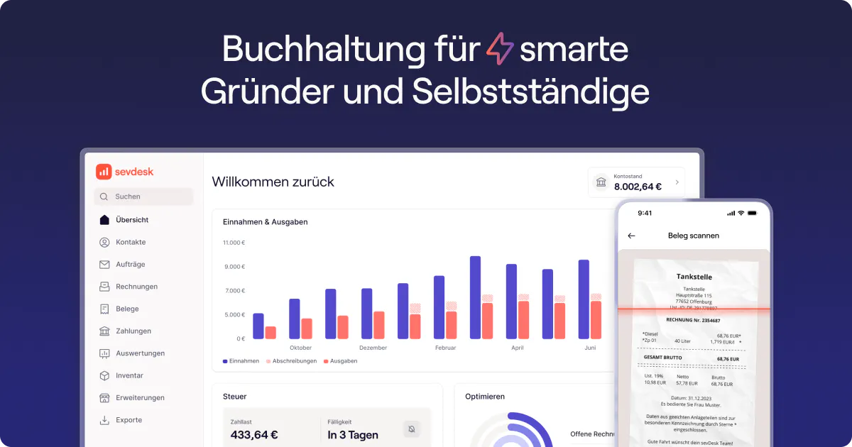 Gemeinsam mit sevDesk schaffen wir eine durchgängige, digitale Lösung – von der Gründung bis zur laufenden Buchhaltung.