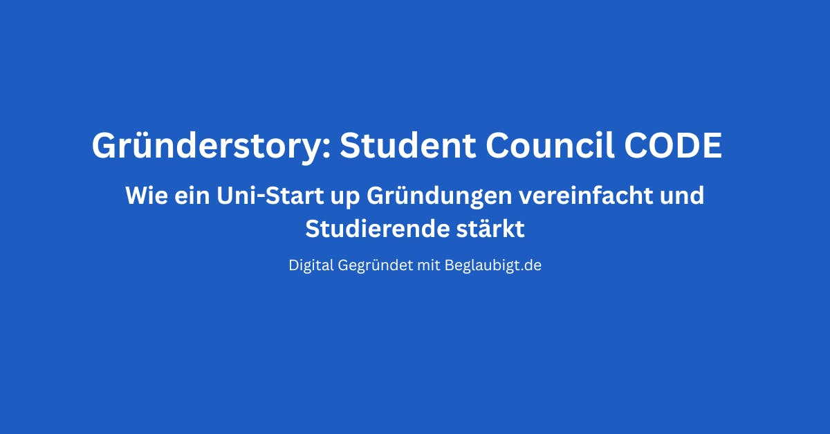 Genau hier setzen sie an. Mit einer rechtssicheren Struktur erleichtern sie den Start und schaffen die Basis für nachhaltiges Wachstum. Der Blogartikel erzählt die Gründungsgeschichte, beleuchtet die Rolle von beglaubigt.de und gibt einen Ausblick, wie die Student Council CODE UG künftig das Startup-Ökosystem an der Universität stärken möchte.